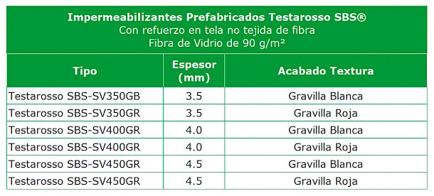 Testarosso SBS® es una membrana impermeable con alta resistencia al envejecimiento, a los hongos y al contacto con el agua. Además, posee propiedades impartidas por el butadieno que confiere flexibilidad y resistencia a los rayos ultravioleta.
